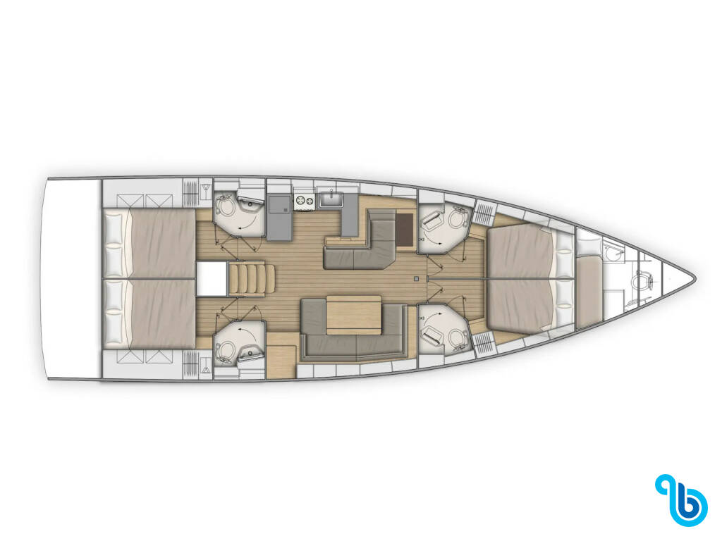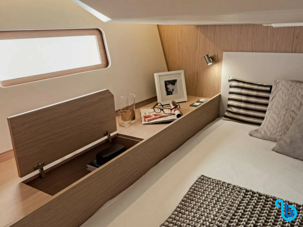 The skipper is not included in the boat price. It will be possible to add the skipper during the confirmation procedure: the cost is usually between €180 and €250 per day plus food; the skipper requires a dedicated cabin. After checking with a BeBlue operator, it will be possible to request that the skipper sleeps in the dinette (central lounge).