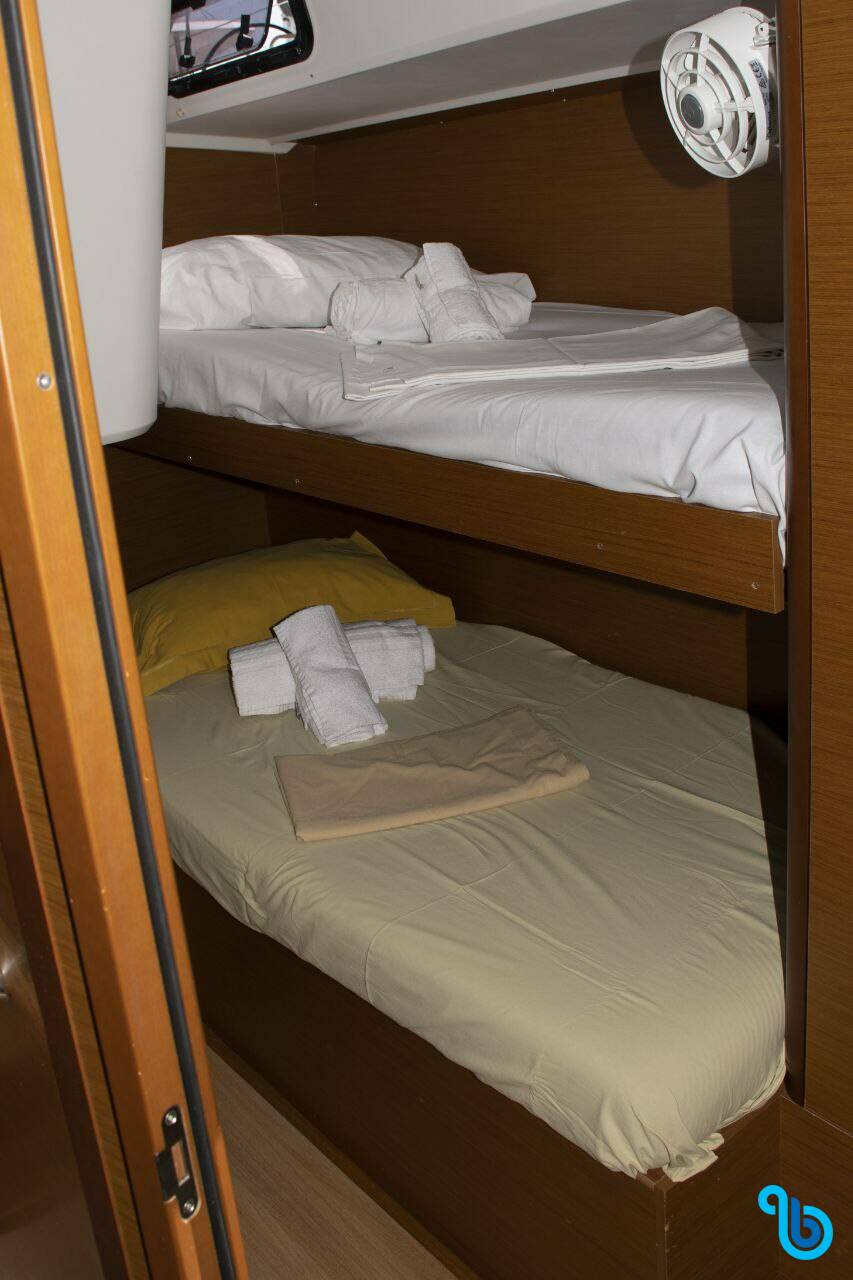 The skipper is not included in the boat price. It will be possible to add the skipper during the confirmation procedure: the cost is usually between €180 and €250 per day plus food; the skipper requires a dedicated cabin. After checking with a BeBlue operator, it will be possible to request that the skipper sleeps in the dinette (central lounge).