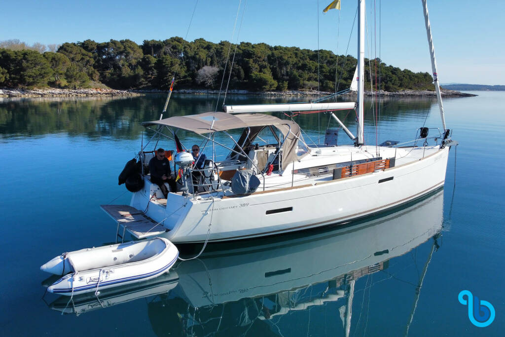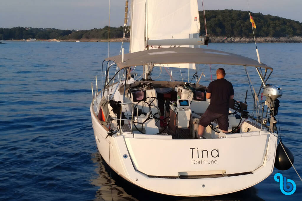 Sun Odyssey 389 TINA (Sailing yacht),was launched in 2018 and is based in Croatia - Istria at Pula, Tehnomont Veruda . The hull is equipped with 3 cabins and 1 wc and comfortably can host 6 + 2 people.