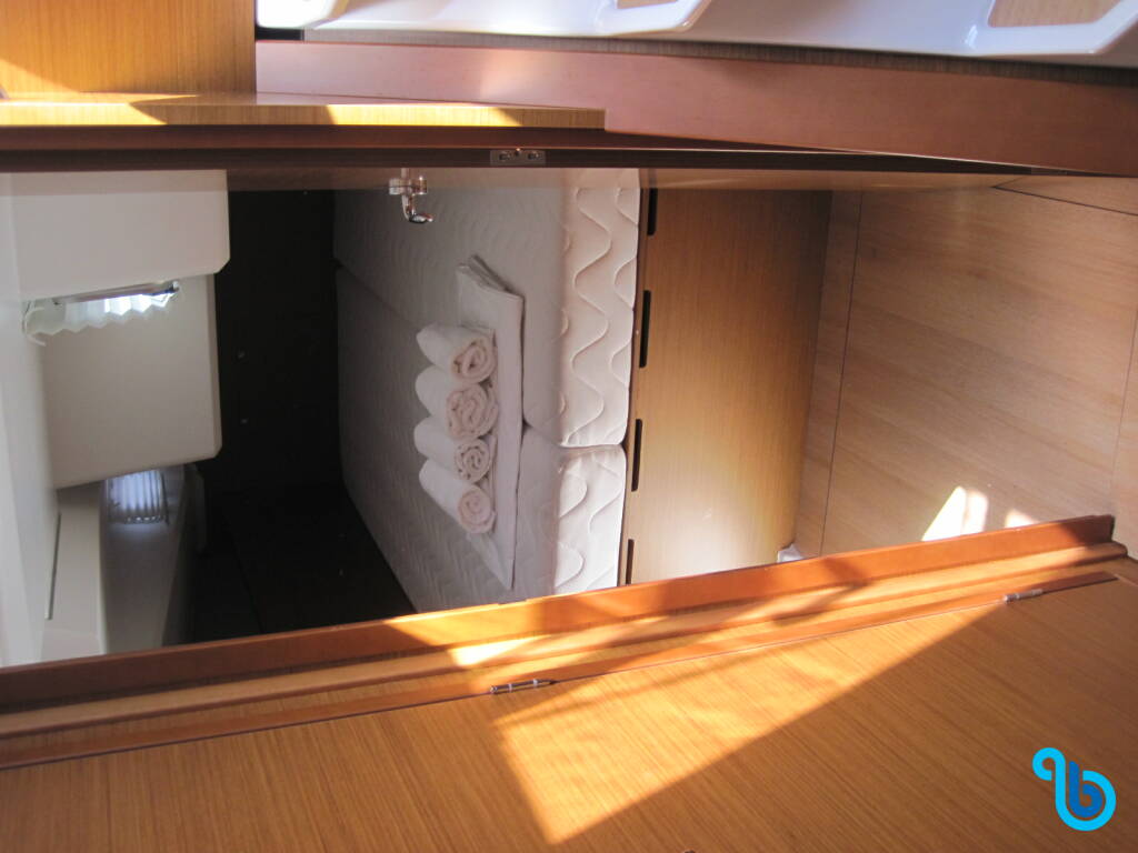 The skipper is not included in the boat price. It will be possible to add the skipper during the confirmation procedure: the cost is usually between €180 and €250 per day plus food; the skipper requires a dedicated cabin. After checking with a BeBlue operator, it will be possible to request that the skipper sleeps in the dinette (central lounge).