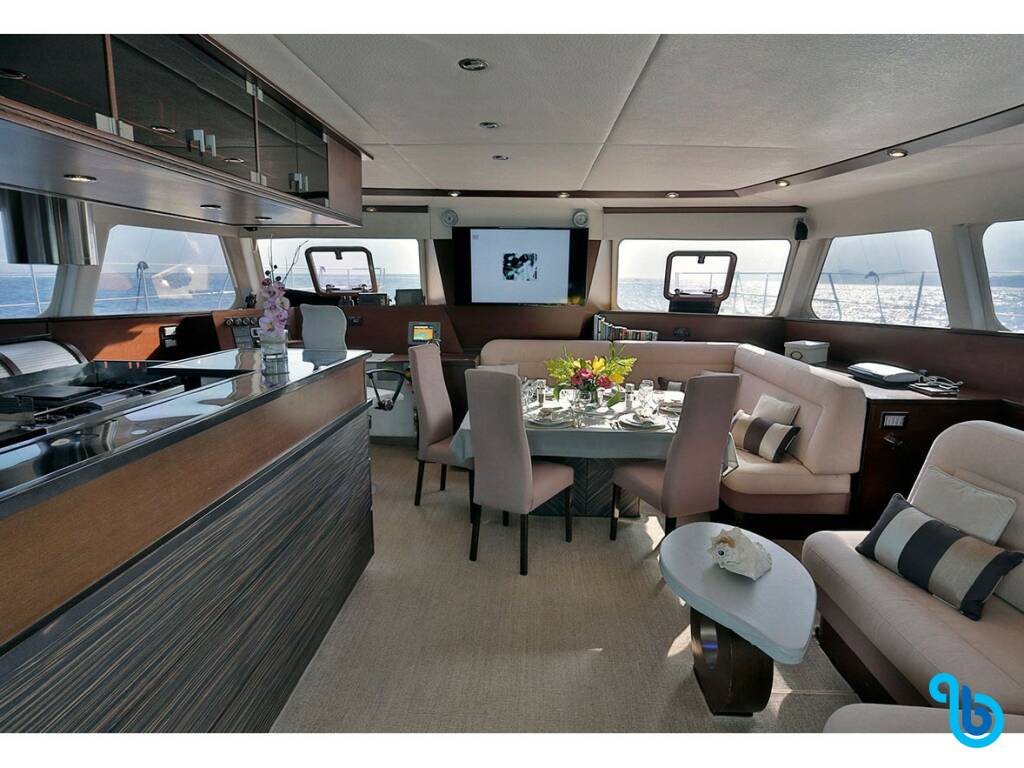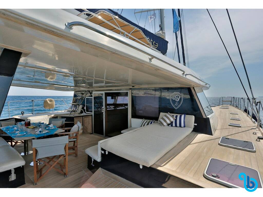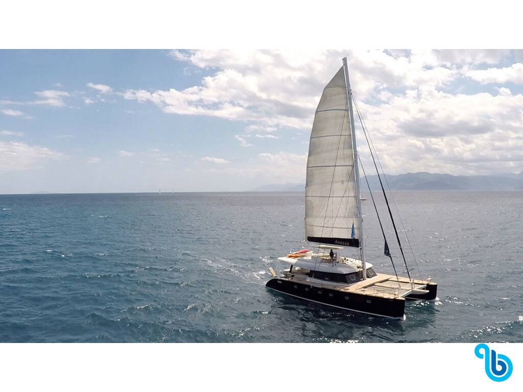 Boat details Sunreef 62 Anassa (Catamaran),was launched in 2007 and is based in Greece - NE Aegean at Keramoti. The hull is equipped with 5 cabins and 5 wc and comfortably can host 12 people. Mandatory Skipper Onboard Mandatory skipper onboard is responsible for navigation, safety, and handling of the yacht. Marina Keramoti, Greece Boat Type Catamaran Shipyard Sunreef Yachts Model Sunreef 62 Year 2007 Cabins 5 Beds 12 WC/Shower 5 Water tank 780 l Length 18.90 m Width 9.20 m Draft 1.58 m Engine 2x160hp Boat ID 333097 Deposit 0 € Deposit 3.000 € EQUIPMENT VIEW- CLOSE Premium Equipment Generator (220KW) Water maker Deck equipments Bimini / tendalino Electric winch Sprayhood Teak cockpit Windlass Extra Dinghy Kitchen Refrigerator Pleasure equipments Cockpit cushions Cockpit speakers Radio (cd,mp3) Radio CD player TV Sailing equipments Genoa furling Other Equipment Bathing ladder Cockpit shower Emergency tiller EPIRB Fire extinguisher First aid kit Flare signals Floating light Full batten main-sail Gangway Gas oven Inverter Lifejackets Liferaft Outboard engine Safety Belts USB sockets VHF Water heater Wirecutter MARINA VIEW- CLOSE Marina Keramoti, Greece Mandatory costs Dinghy and outboard engine 2,5hp mandatory - Payable at the base per booking 0 € One way (keramoti - volos) mandatory - Payable at the base per booking 800 € Optional extras One way (keramoti - volos) per booking 800 € Auto-inflatable life jacket per week 30 € Beach towel x per person 13 € Early check-in per booking 200 € Extra bed linen x per person 12 € Kayak/canoe per week 140 € Pet/animal option per booking 200 € Safety net per booking 200 € Skipper per day 210 € Sup (stand up paddle) per week 120 € Wifi (12 gb) per week 70 € SEE ALL Availability SUNREEF 62 | ANASSA 04.10. - 11.10.2025 Booked 11.10. - 18.10.2025 -12% 11.025 € 12.500 € 18.10. - 25.10.2025 -12% 11.025 € 12.500 € 25.10. - 01.11.2025 -12% 11.025 € 12.500 € 01.11. - 08.11.2025 -12% 11.025 € 12.500 € 08.11. - 15.11.2025 -12% 11.025 € 12.500 € 15.11. - 22.11.2025 -12% 11.025 € 12.500 € 22.11. - 29.11.2025 -12% 11.025 € 12.500 € 29.11. - 06.12.2025 -12% 11.025 € 12.500 € 06.12. - 13.12.2025 -12% 11.025 € 12.500 € 13.12. - 20.12.2025 -12% 11.025 € 12.500 € 20.12. - 27.12.2025 -12% 11.025 € 12.500 € Questions & Answers What licenses do I need to rent the boat Sunreef 62 | Anassa? It is mandatory to have a nautical license and a personal VHF radio certificate. We recommend checking with a BeBlue operator to ensure your license is accepted for this boat and this country. Does the price include the skipper? The skipper is not included in the boat price. It will be possible to add the skipper during the confirmation procedure: the cost is usually between €180 and €250 per day plus food; the skipper requires a dedicated cabin. After checking with a BeBlue operator, it will be possible to request that the skipper sleeps in the dinette (central lounge). What is the Charter Pack? It is a compulsory, flat-rate extra that usually includes final cleaning plus other services provided by the base. What are the additional costs? The additional costs consist of the mandatory and optional extras. Out-of-pocket expenses and consumption will also be incurred during navigation. (e.g. estimated food galley 20€ per person per day, diesel fuel per week 150-300€, ports and buoys, nature parks, etc.). What kind of documents will I receive from BeBlue after booking? The booking will be confirmed online by entering the lease holder's details and the actual contract will be issued. You will receive a boarding pass 7 days before the departure with pre-boarding instructions and details. How does reservation and cancellation work? In order to confirm the boat Sunreef 62 | Anassa, 50% of the boat price must be paid and 35 days before departure the balance must be paid. Any optional and mandatory extras must be paid on site (unless otherwise requested). The amount paid is non-refundable, but we recommend taking out a dedicated cancellation insurance policy.https://www.bebluesailing.com/en/Traveller-services/travel-Insurance-Rent Is the boat Sunreef 62 | Anassa insured? All boats are covered by Kasko insurance to protect it against possible damage. Additional insurance is available to increase the skipper's liability limit, protect the security deposit and/or cancel the trip: https://www.bebluesailing.com/en/Traveller-services/travel-Insurance-Rent How much is the security deposit? The security deposit for any damage caused to this boat is 3.000,00 € . You can reduce the risk by insuring the deposit via the link: https://www.bebluesailing.com/en/Traveller-services/travel-Insurance-Rent Note: The information provided is for informational purposes only and should be confirmed before booking by a BeBlue agent.