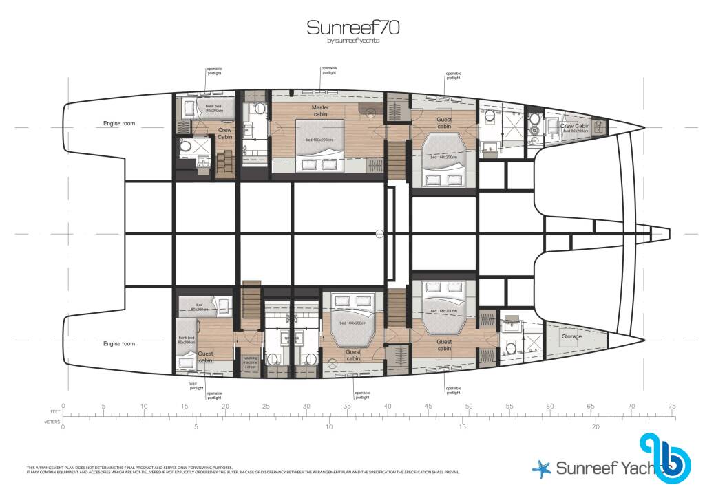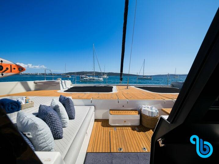Sunreef 70 n + 1 (Catamaran),was launched in 2024 and is based in Croatia - Split at Kastela Marina . The hull is equipped with 4 + 3 cabins and 4 wc and comfortably can host 8 + 4 people.