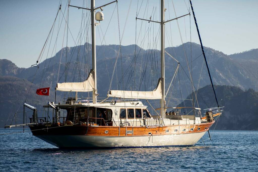 Gulet Kaftan, built in 1998 is anchored in the Greece, Turkey. It has 4 cabins, can accommodate 9 people.
