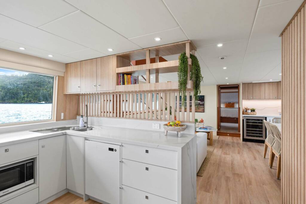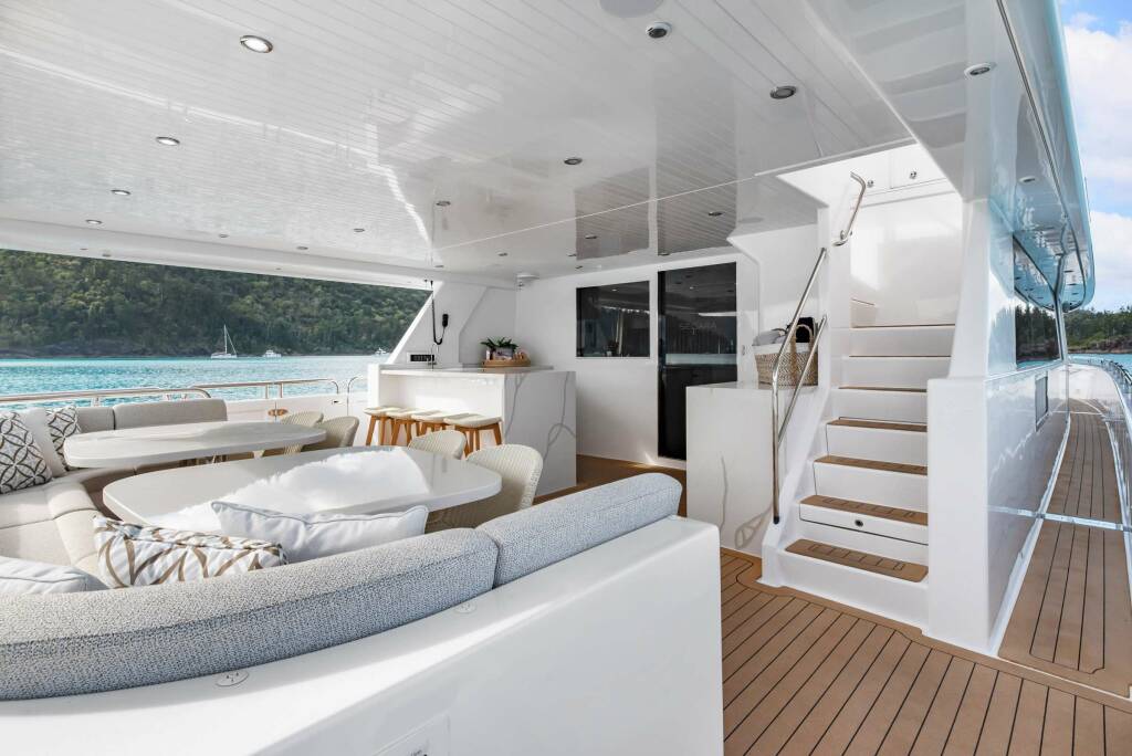 • Catamaran for generous spaces, superior stability, and enhanced privacy.