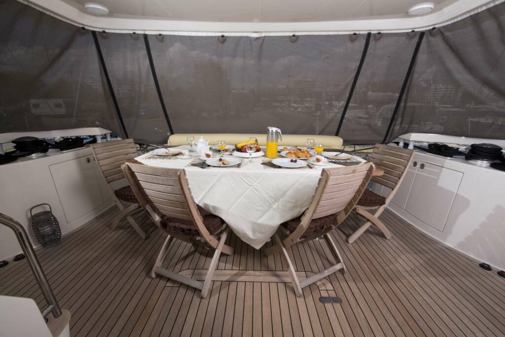 Accommodation: The Master cabin is amidships and full beam of the yacht, with a center lined queen size bed, sofa, vanity, walk in wardrobe and en-suite facilities.