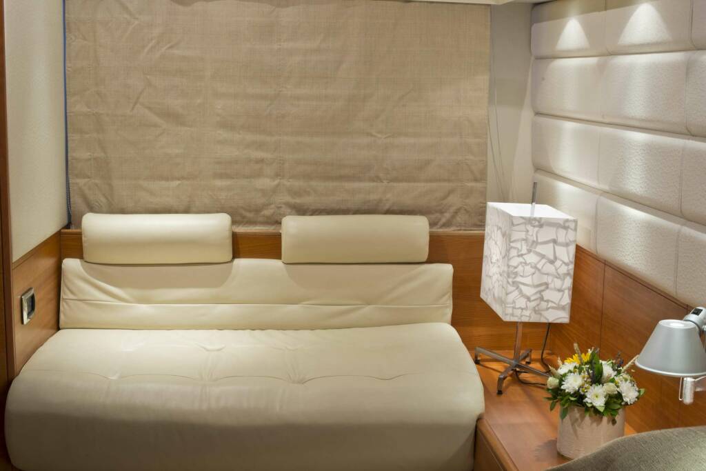 Forward and full beam of the yacht is the VIP cabin, offering a center lined double bed and en-suite facilities.