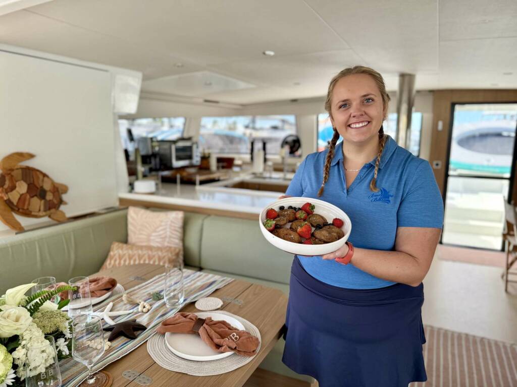 She is thrilled to welcome you aboard Barefoot Bliss, where she looks forward to treating you to a culinary journey as unforgettable as the views.