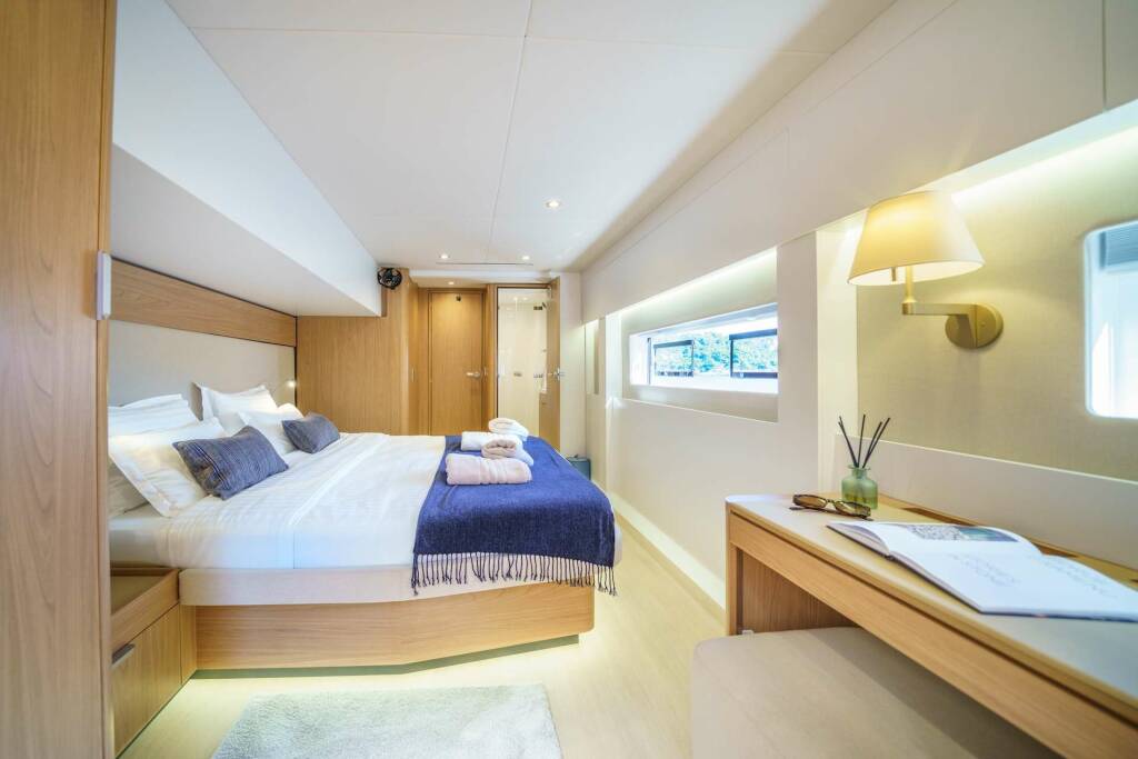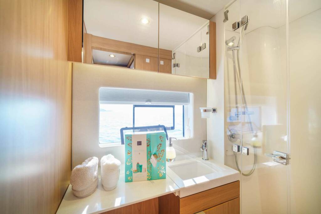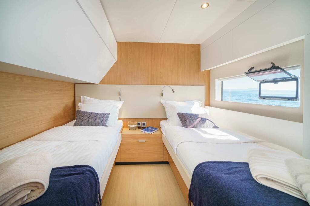 • Catamaran for generous spaces, superior stability, and enhanced privacy.