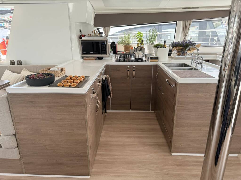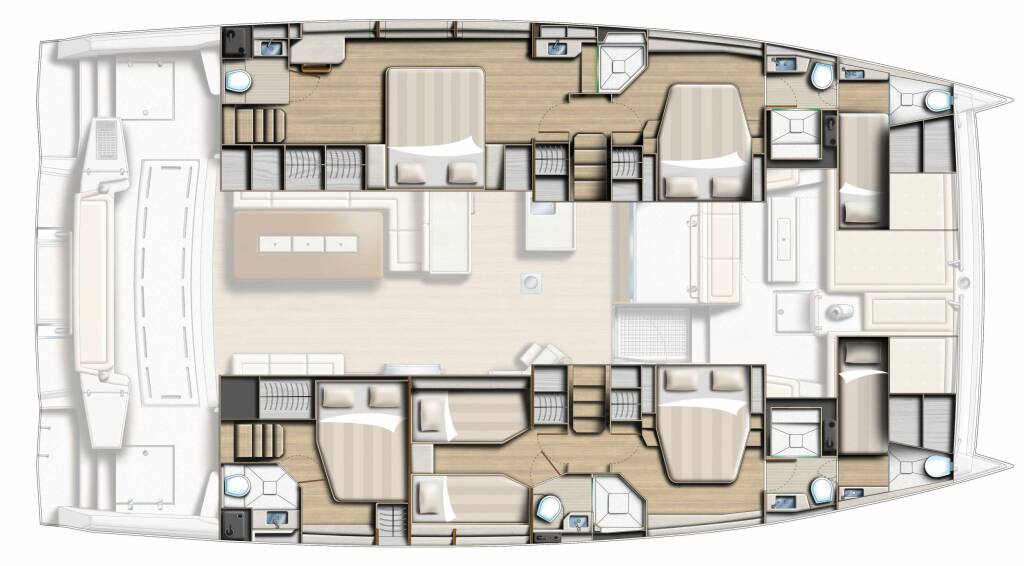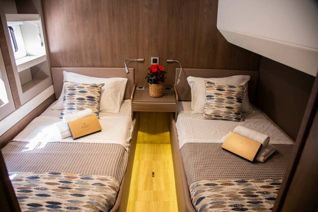 • Catamaran for generous spaces, superior stability, and enhanced privacy.