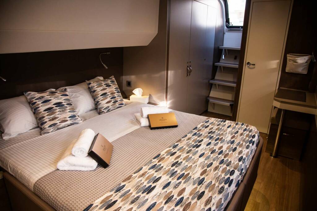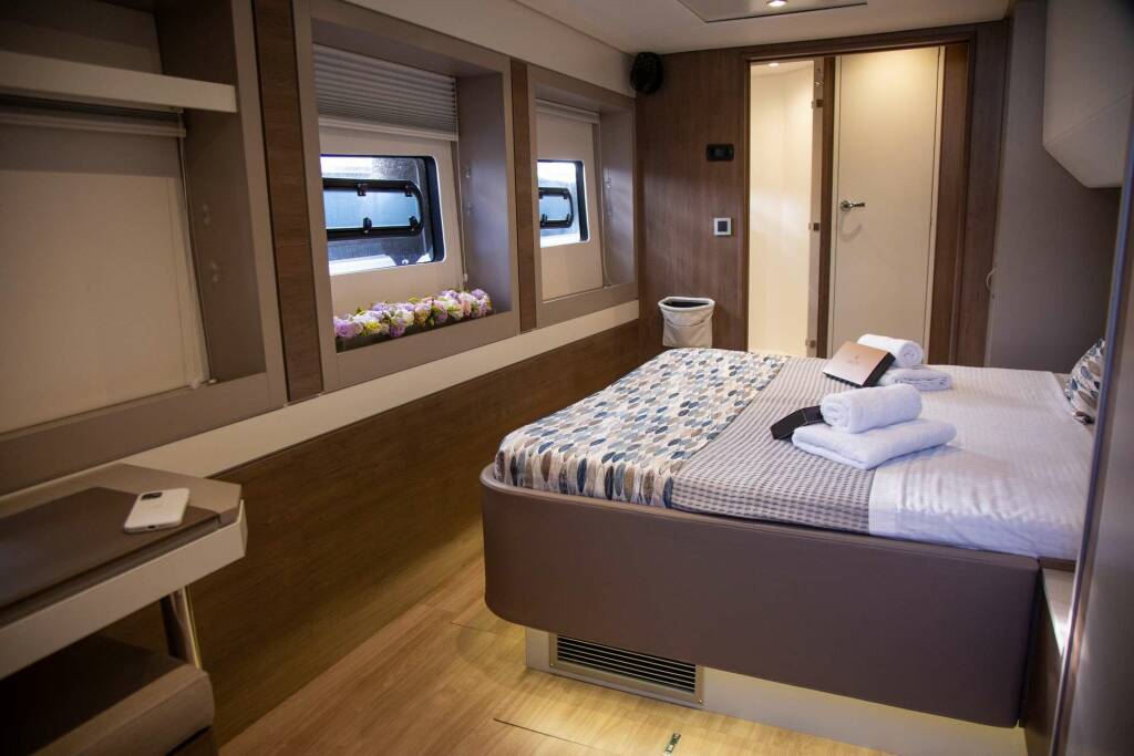 Luxury catamaran Fortune One, built in 2023 is anchored in the Greece. It has 5 cabins, can accommodate 10 people.