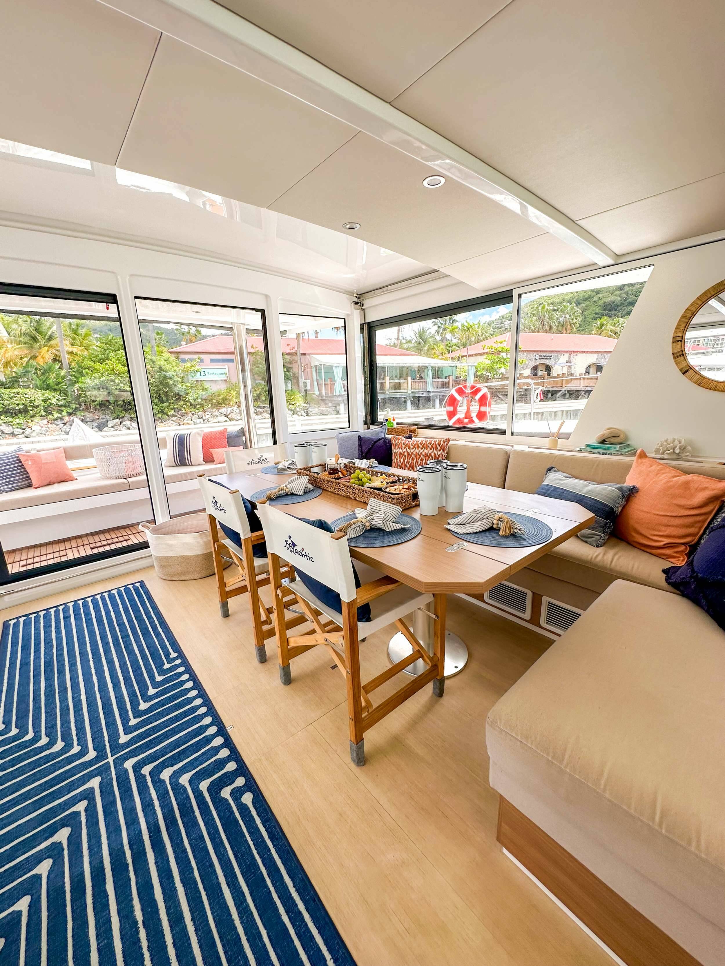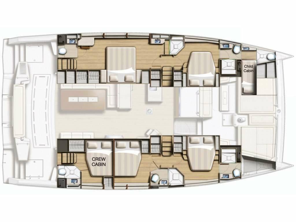 • Catamaran for generous spaces, superior stability, and enhanced privacy.