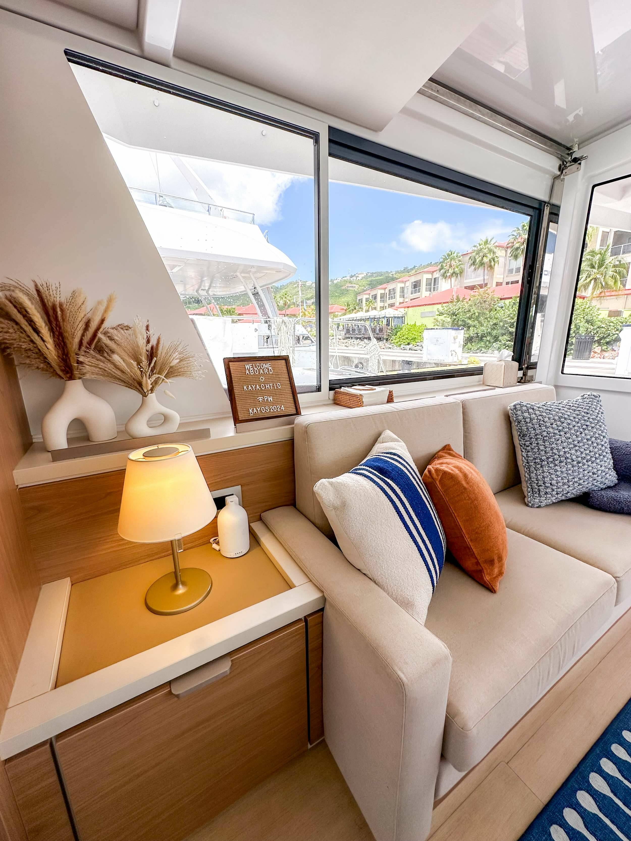 Luxury catamaran KaYachtic , built in 2024 is anchored in the Caribbean Virgin Islands (US/BVI), Caribbean Leewards. It has 5 cabins, can accommodate 9 people.
