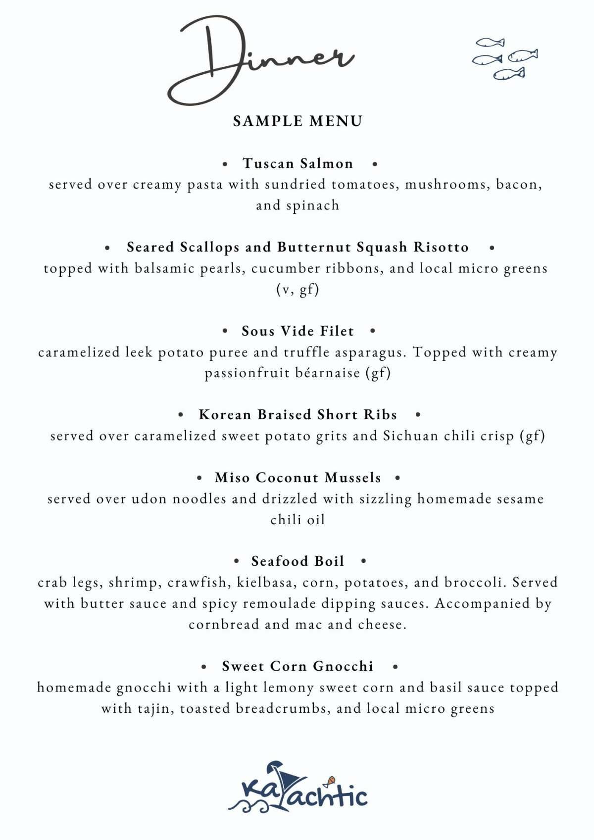 The Chef and the Captain will use this information to create a fully customised experience for you.
