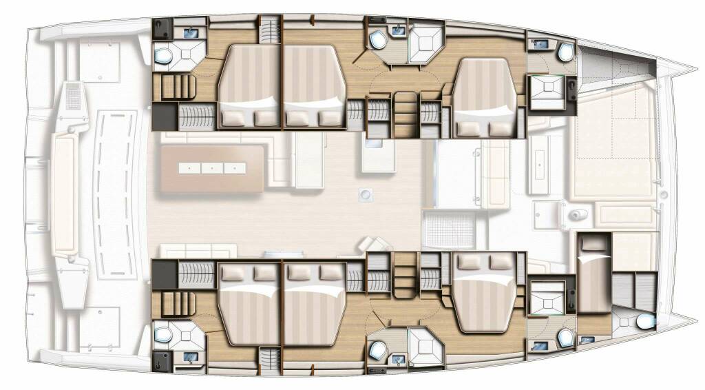Accommodation: 5 queen cabins with ensuite heads available for guest use. One single v berth cabins suitable for young adults or children. Please inquire for more information.