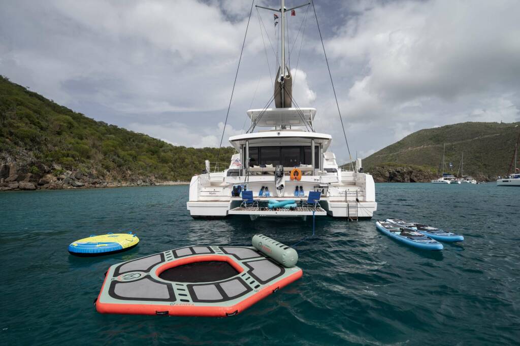 Luxury catamaran MYSTIC, built in 2023 is anchored in the Caribbean Virgin Islands (BVI). It has 4 cabins, can accommodate 8 people.