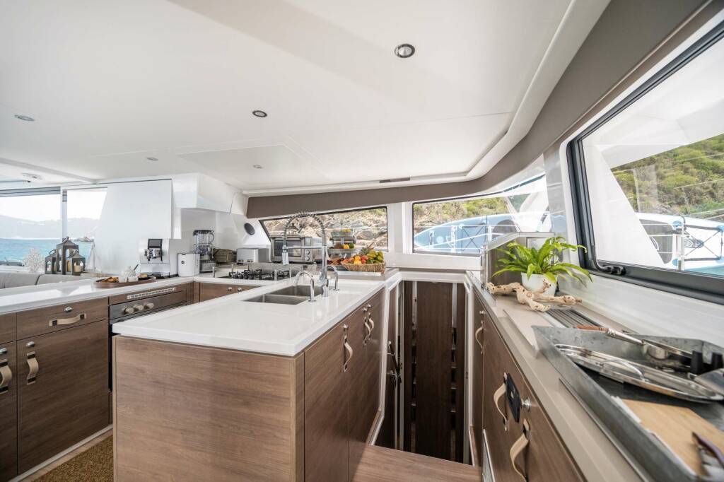 Main deck has a bright and airy main salon (fully air-conditioned) as the galley direct access to the forward cockpit lounge area.