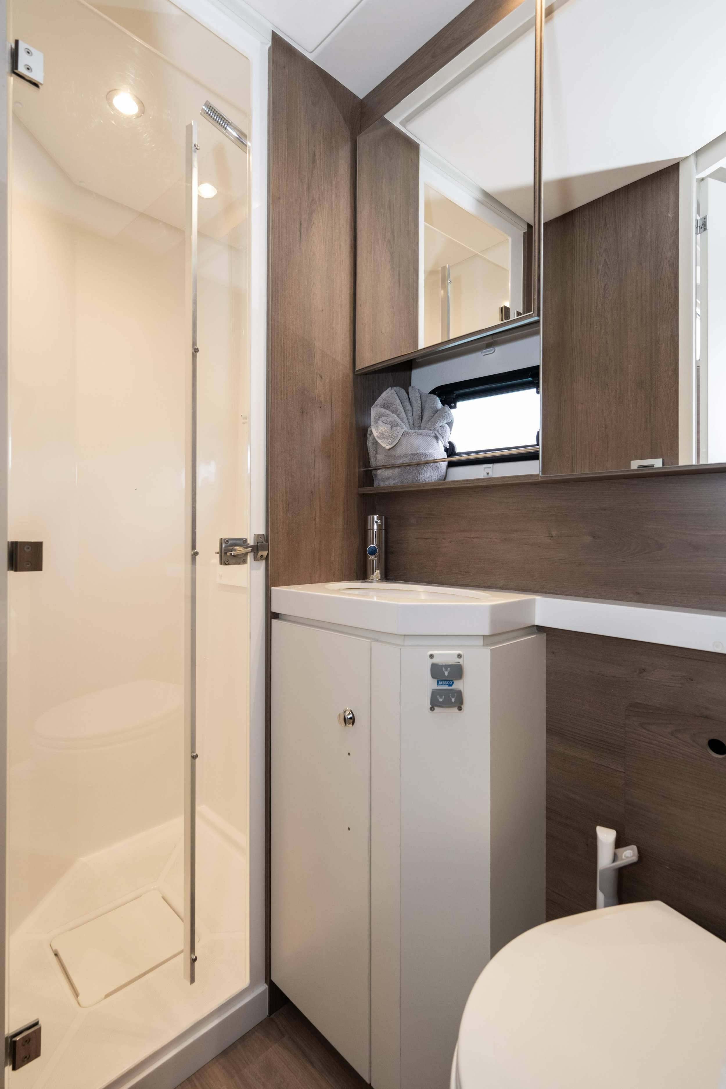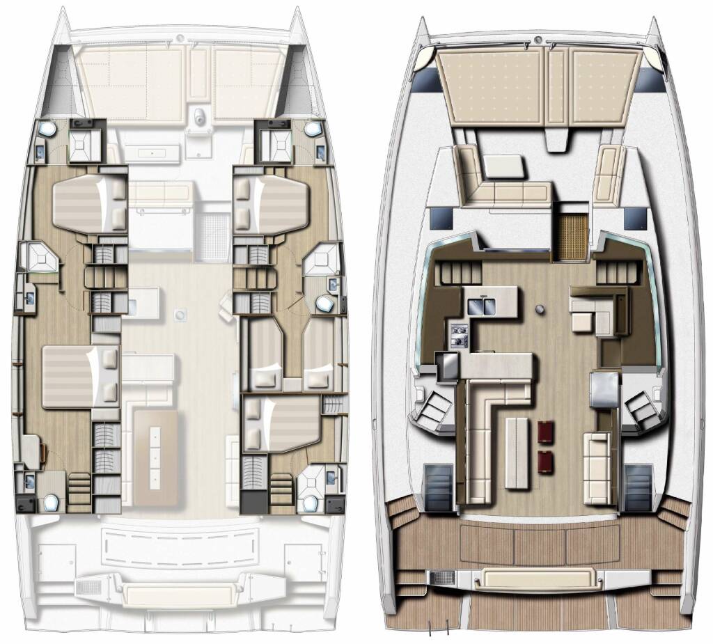 • Catamaran for generous spaces, superior stability, and enhanced privacy.