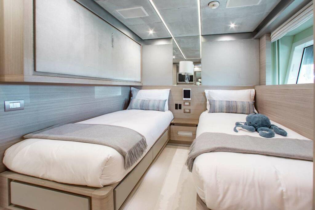 • Catamaran for generous spaces, superior stability, and enhanced privacy.