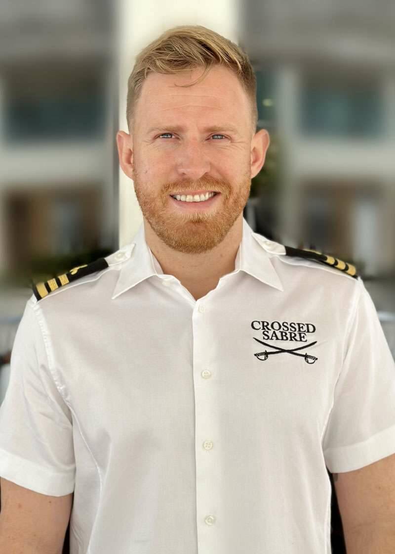 Captain Marc hails from Montreal, Canada, where his love for boating began early. In his twenties, he set off with a one-way ticket and a single suitcase, landing in the Caribbean to start his nautical career. At 22, he became captain of a sport fishing vessel, combining his passions for fishing and adventure. By 28, while living in Saint Martin, he shifted to larger yachts and rose quickly through the ranks. With global experience and sharp navigational skills, Captain Marc delivers an exceptional charter experience aboard CROSSED SABRE.