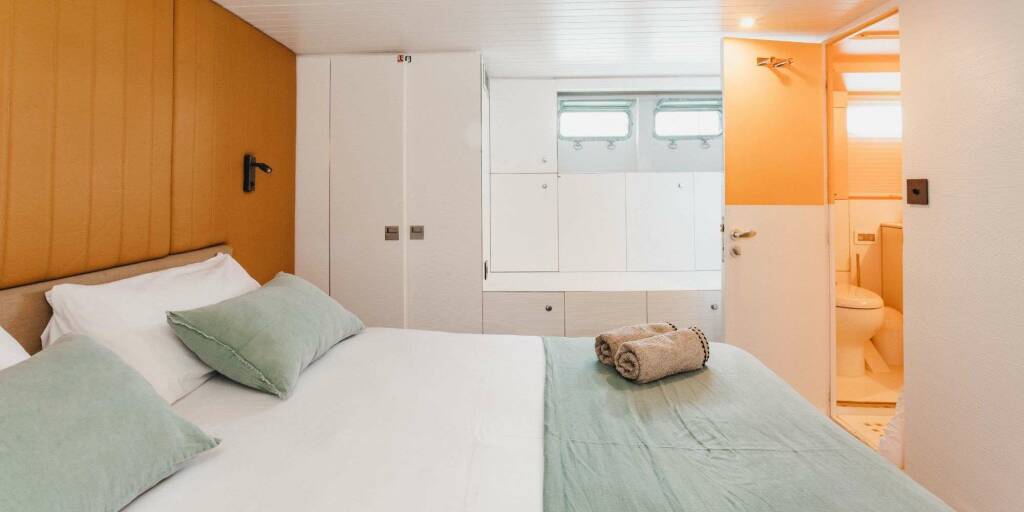 • Catamaran for generous spaces, superior stability, and enhanced privacy.