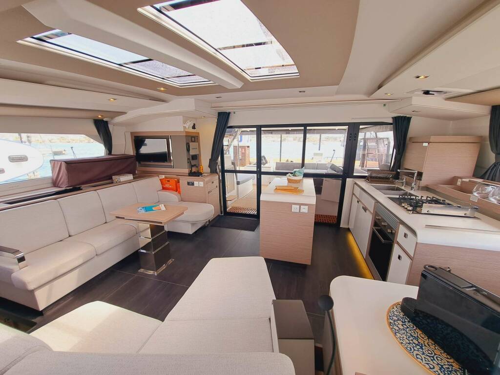 • Catamaran for generous spaces, superior stability, and enhanced privacy.