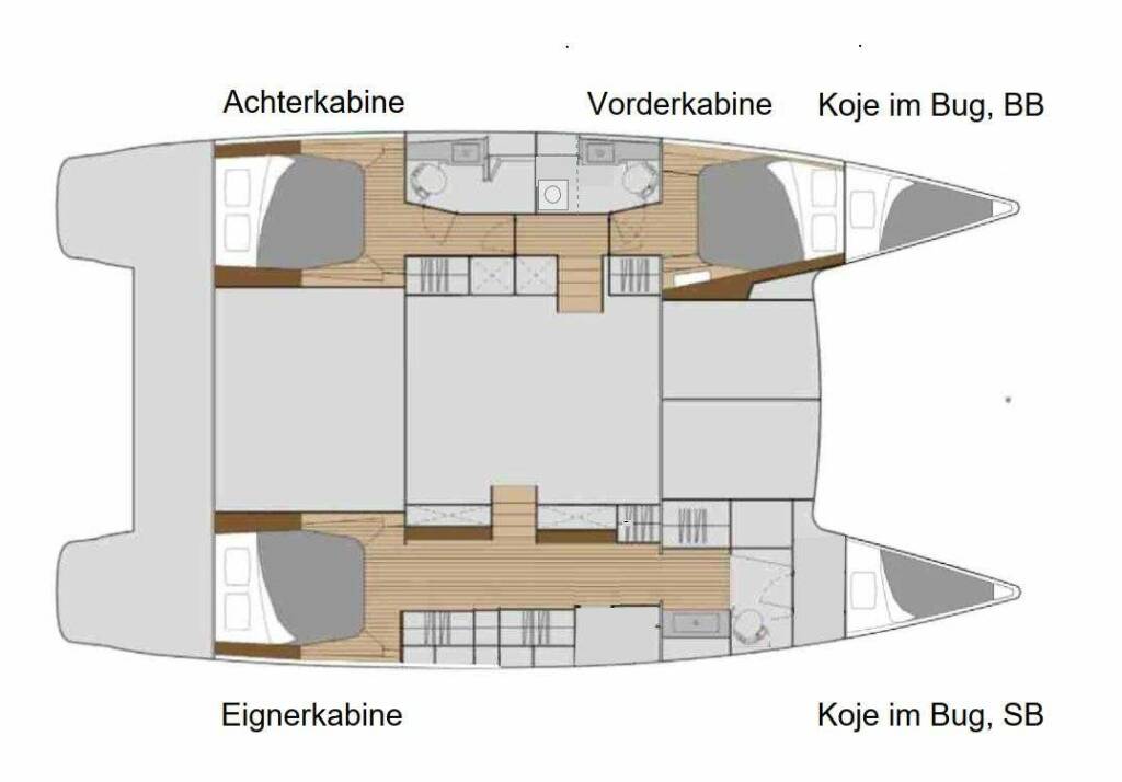 • Catamaran for generous spaces, superior stability, and enhanced privacy.
