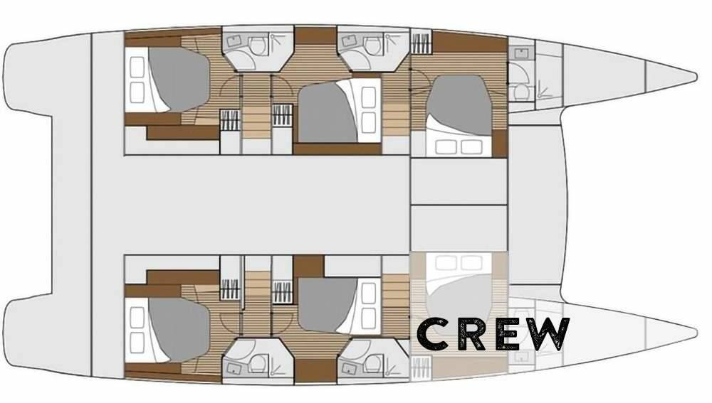 • Catamaran for generous spaces, superior stability, and enhanced privacy.