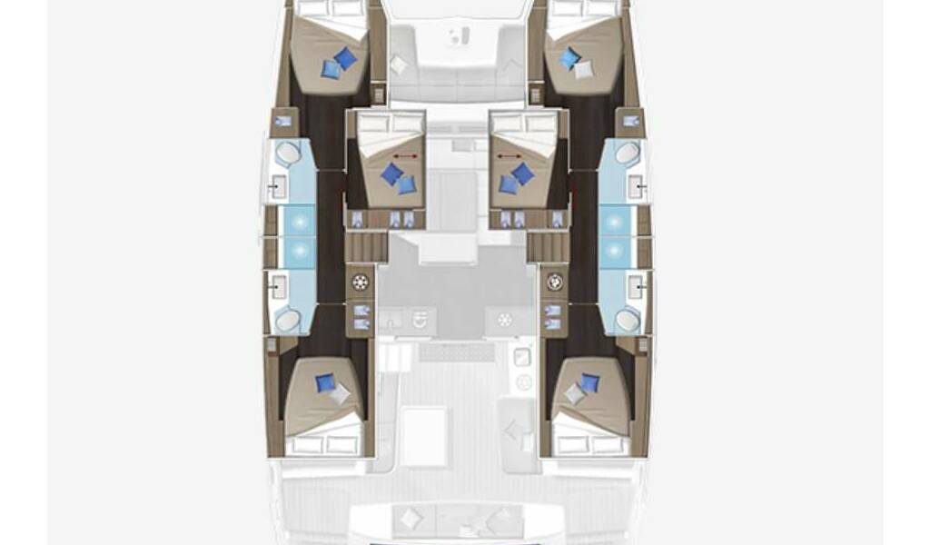• Catamaran for generous spaces, superior stability, and enhanced privacy.