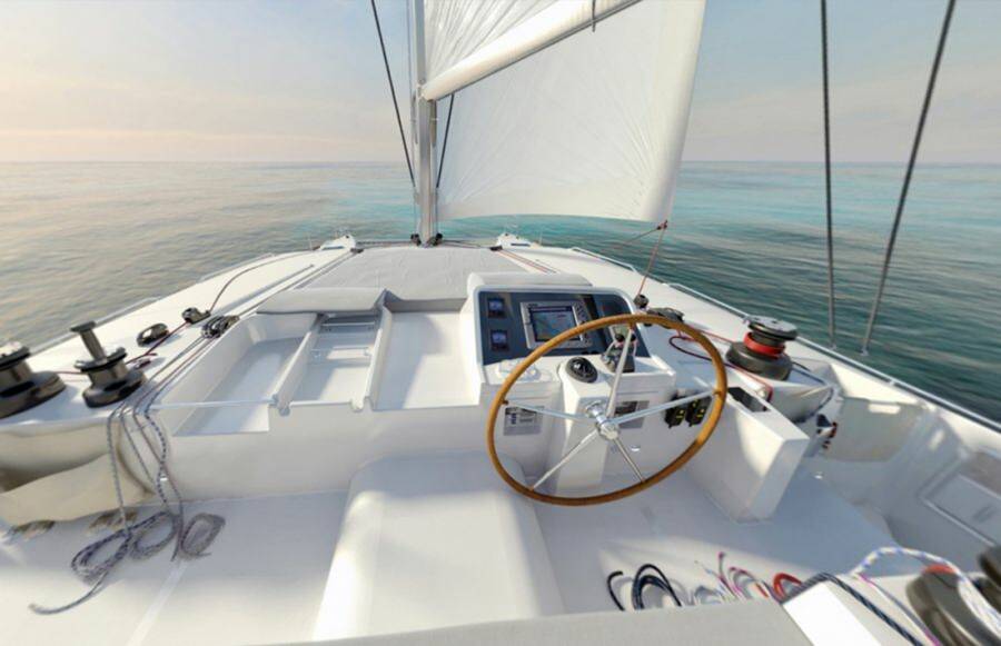 • Catamaran for generous spaces, superior stability, and enhanced privacy.
