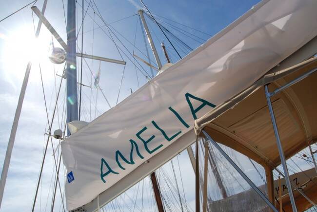 Luxury catamaran AMELIA, built in 2012 is anchored in the Greece. It has 4 cabins, can accommodate 8 people.