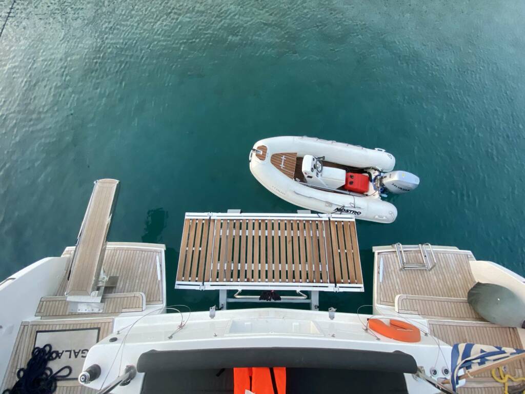 Deck : Dinghy | Electric Winch | Outboard motor 40HP | Electric Anchor Windlass | Anchor | Anchor Chain | Anchor Windlass Control | Boat Hook | Cockpit Shower | Fenders | Gas Bottles | Mooring Ropes | Swimming Ladder | Teak Cockpit | Water Hose & Adaptors | Winch Handles