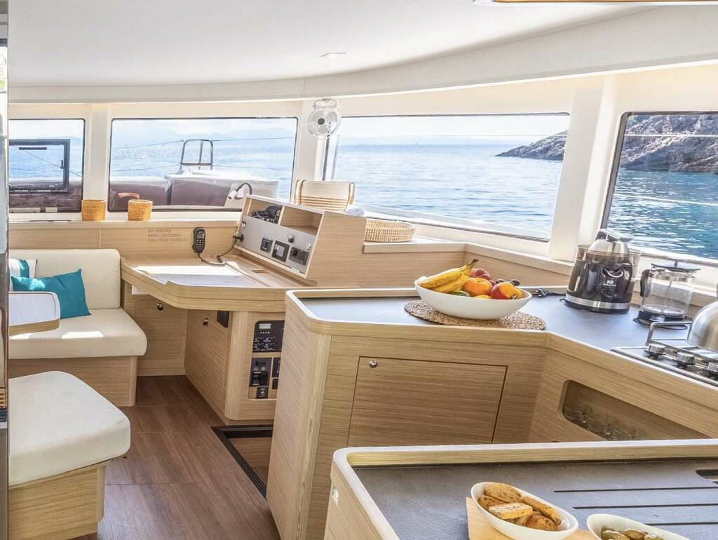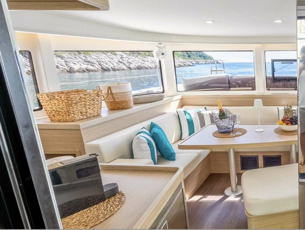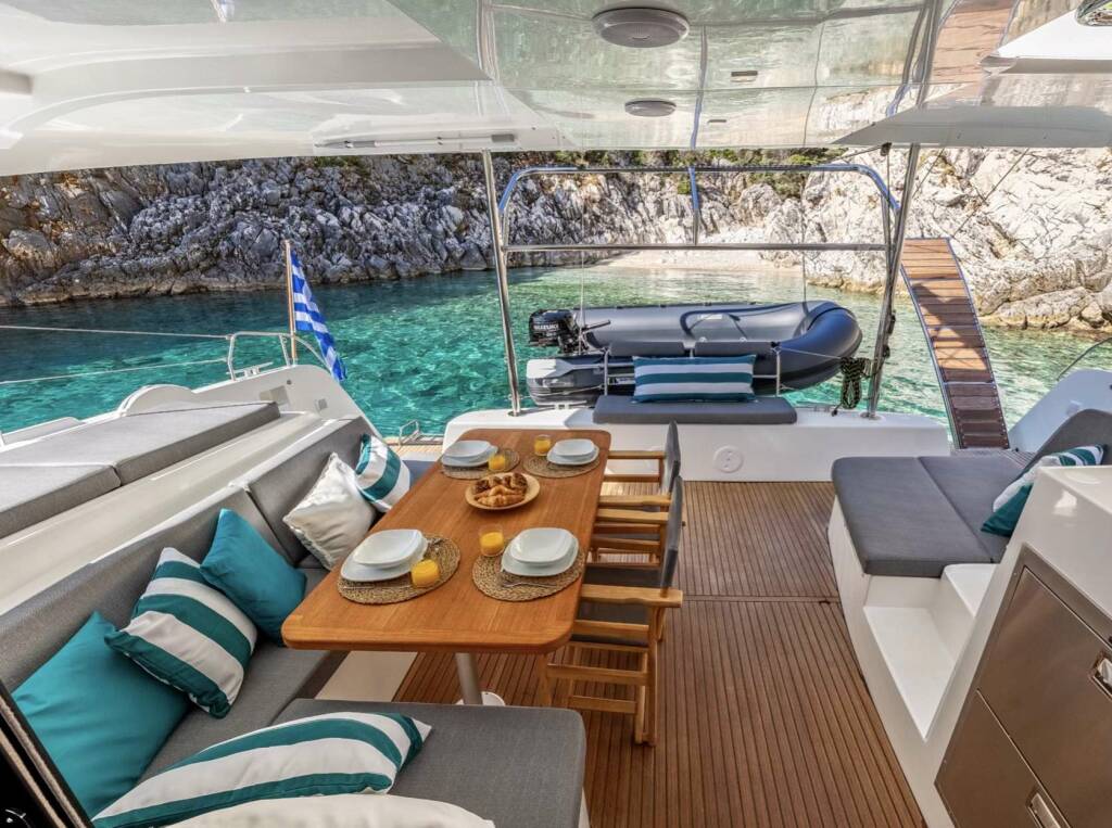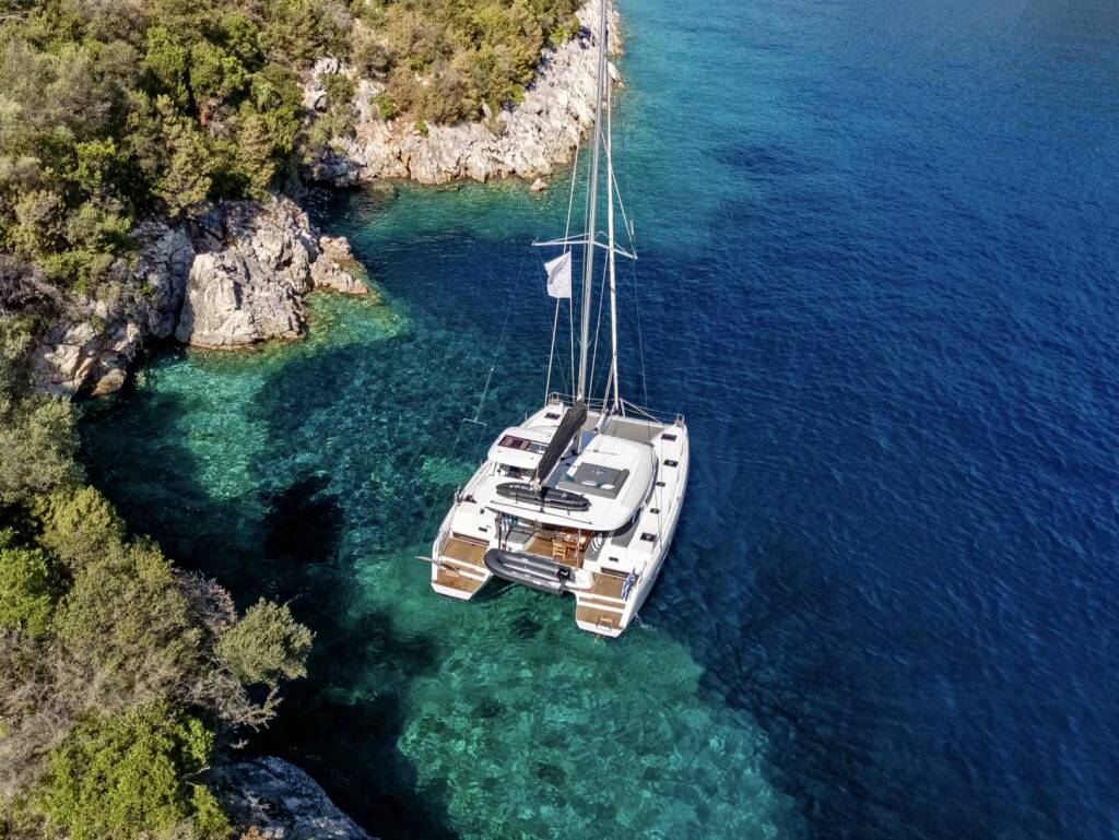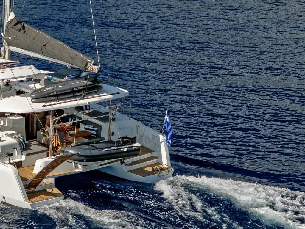 Luxury catamaran INSPIRE, built in 2025 is anchored in the Greece. It has 3 cabins, can accommodate 6 people.