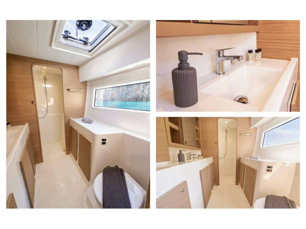 Accommodation: 1 Large Owner’s Suite spanning the entire starboard hull, with a private ensuite bathroom