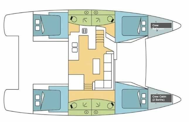 • Catamaran for generous spaces, superior stability, and enhanced privacy.