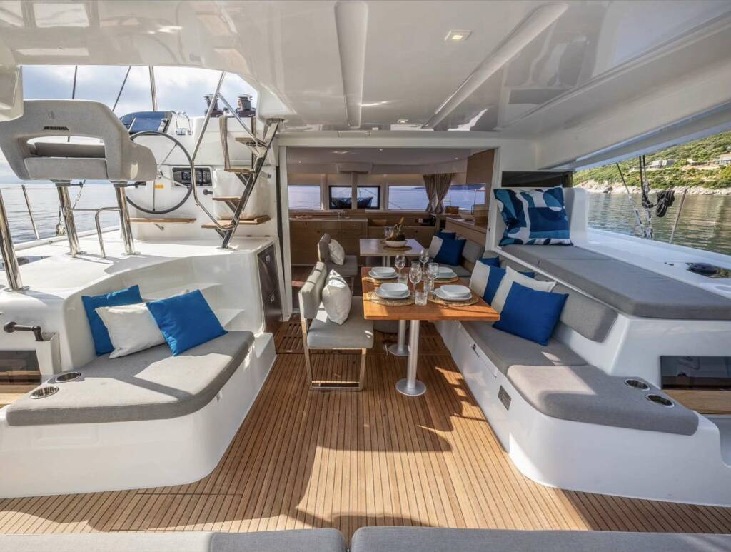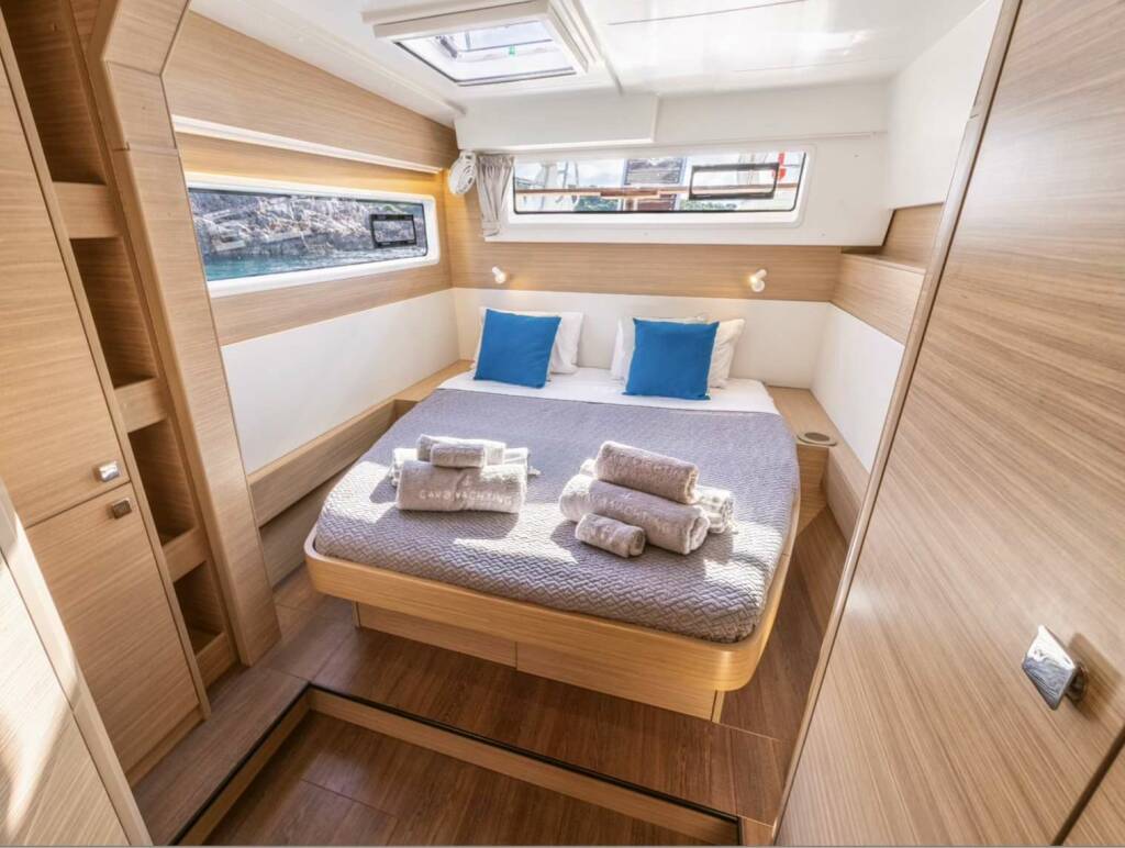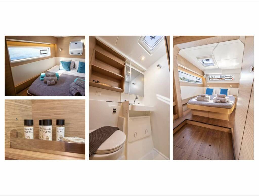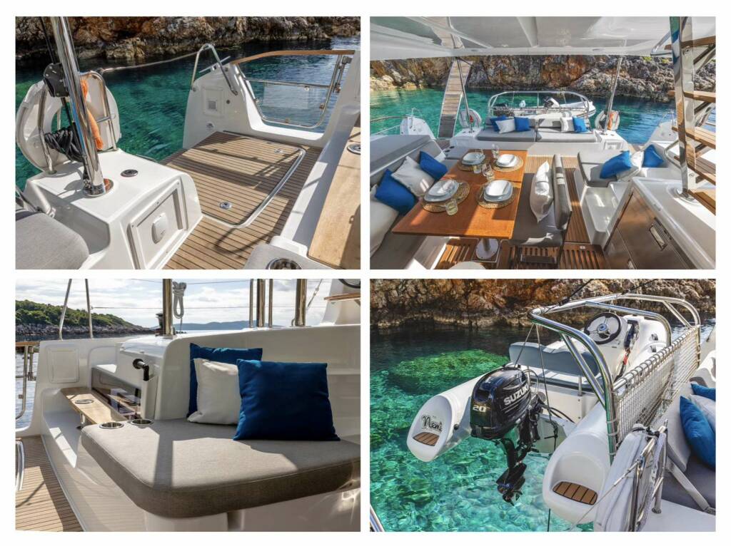Luxury catamaran NEMI, built in 2025 is anchored in the Greece. It has 4 cabins, can accommodate 8 people.