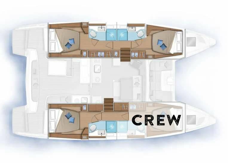 • Catamaran for generous spaces, superior stability, and enhanced privacy.