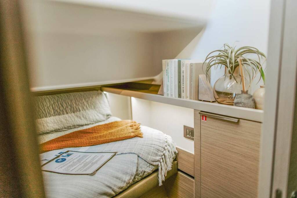 3 queen ensuite cabins and midship cabin are available to guests. Midship and port forward cabins share head. Crew will take port aft queen cabin.