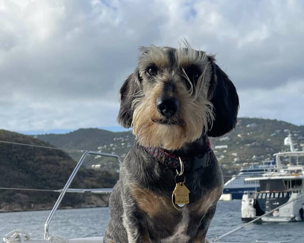You won’t find a better First Mate than this handsome, well-mannered Miniature Wirehaired Dachshund. As a mature 5-year-old, Pete is dedicated to keeping the crew and all aboard the Barefoot Cowboy in good spirits. He’s laid back, enjoys chasing reflections, riding in the dinghy, long walks on the beach, swimming, loves naps and acts as Captain Roy’s shadow when off-duty.