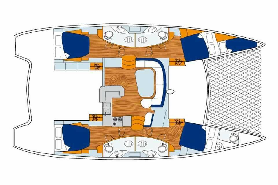 • Catamaran for generous spaces, superior stability, and enhanced privacy.
