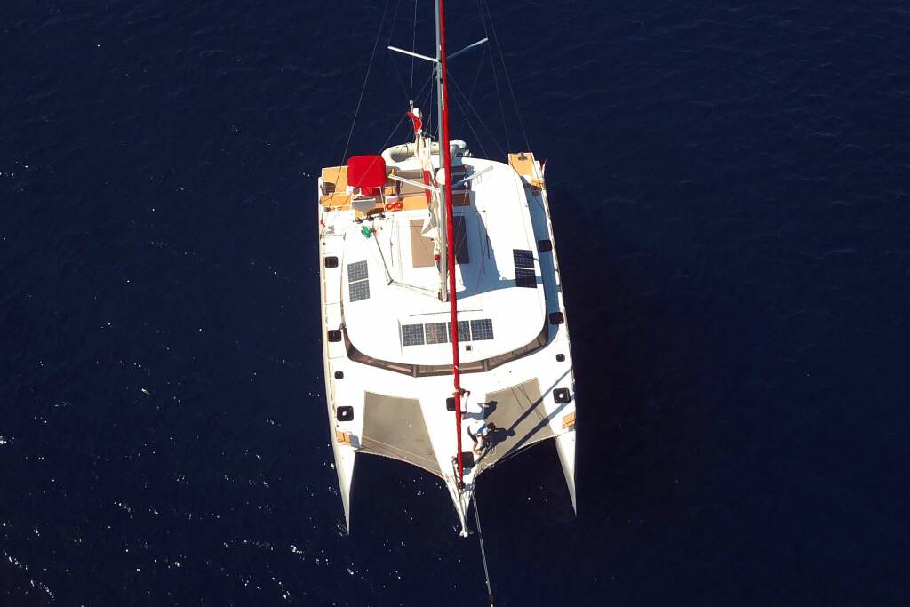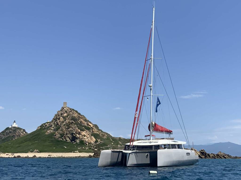 Luxury catamaran L'OCTANT, built in 2018 is anchored in the W. Med -Naples/Sicily, W. Med -Riviera/Cors/Sard.. It has 3 cabins, can accommodate 6 people.