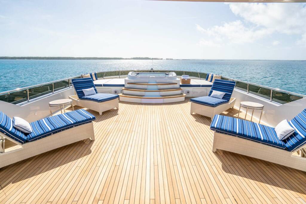Accommodation: Relentless features five lavish staterooms including a king master suite located on deck with his and hers bathroom to include a large shower and Jacuzzi tub. Four additional guest staterooms are located below, which include two king staterooms, one queen and one twin, all with en-suite bathrooms, full entertainment systems and large closets for storage.