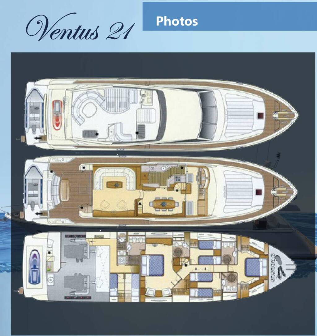 Luxury motor yacht Ventus 21, built in 2003 is anchored in the Greece. It has 4 cabins, can accommodate 8 people.
