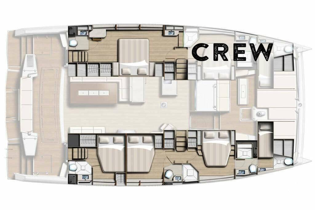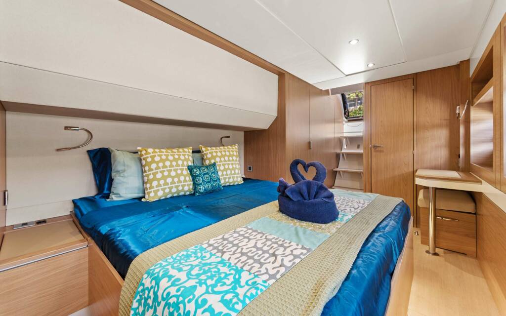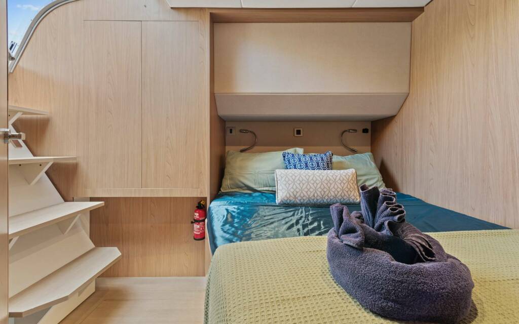 • Catamaran for generous spaces, superior stability, and enhanced privacy.