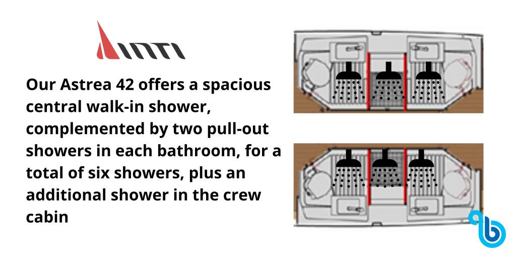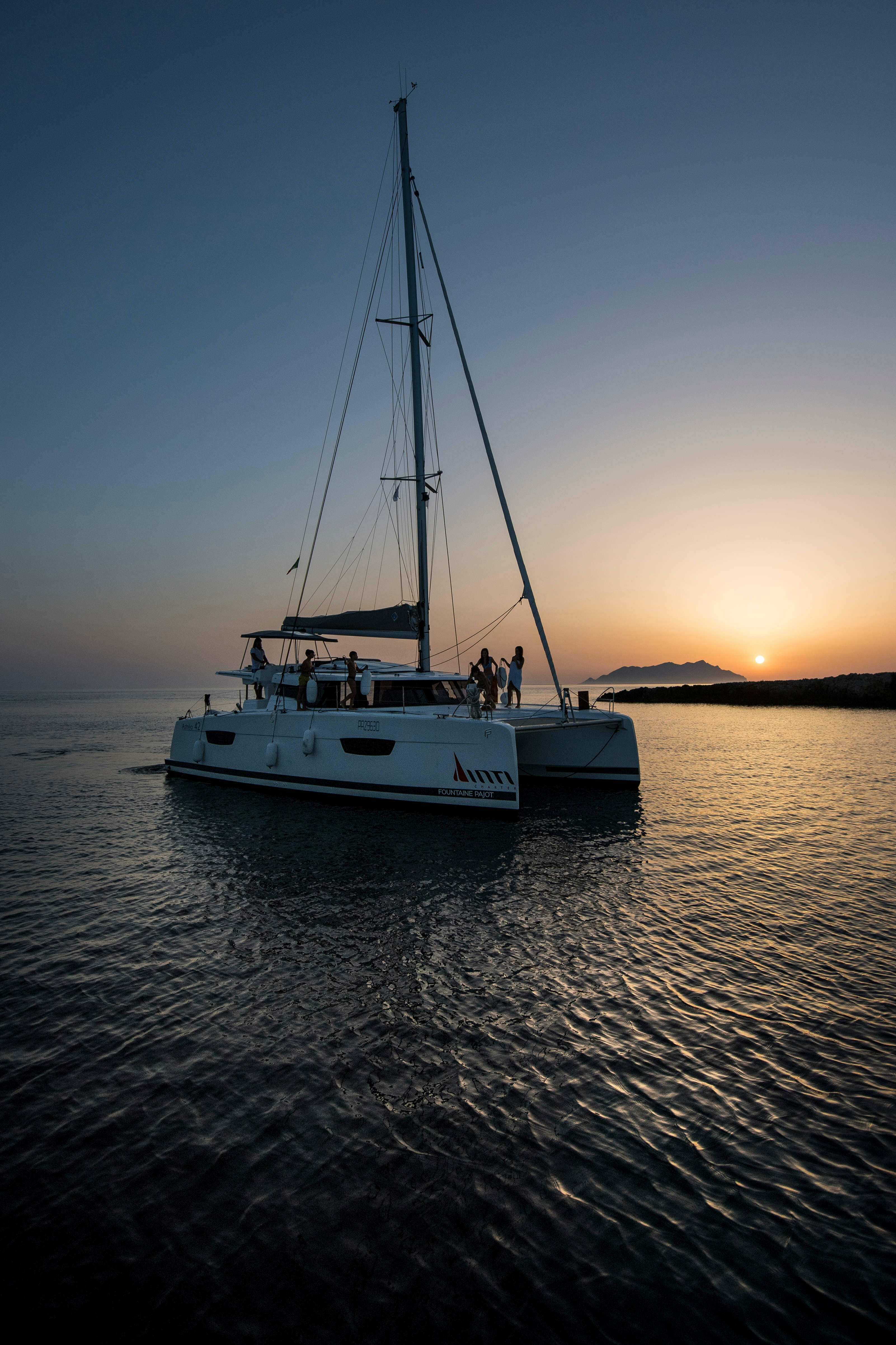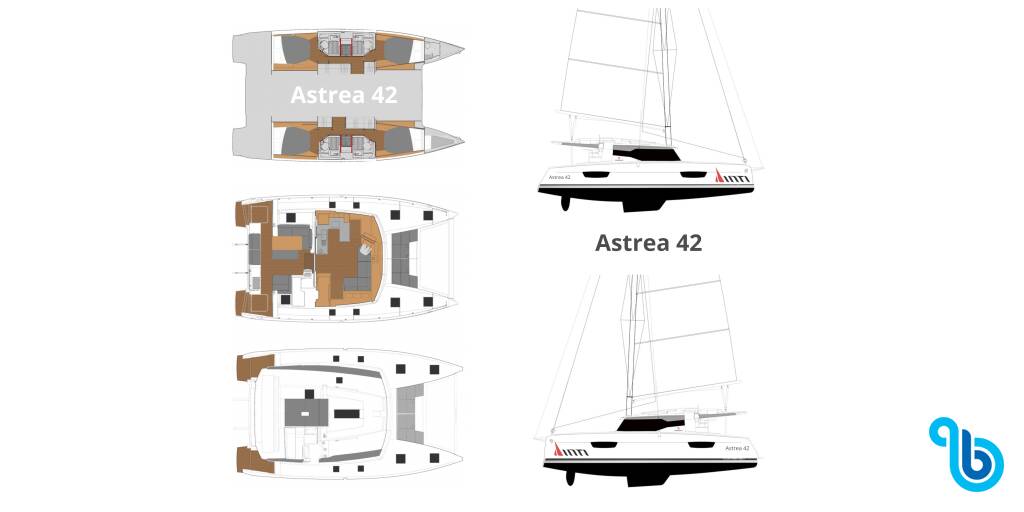 El Astrea 42 ASTREA (Catamarán), fue botado en el 2019 y tiene base en Sicilia de la ciudad de Trapani, Castellammare del Golfo. El casco está configurado con 4 + 1 cabinas y 5 wc y está homologado para alojar cómodamente 8 + 2 + 1 personas.