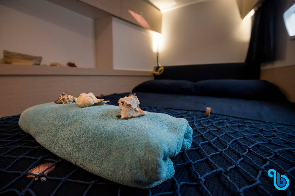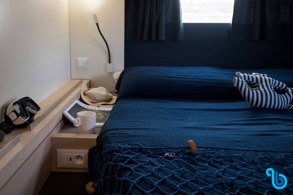 El patrón no está incluido en el precio del barco. Será posible añadir el patrón durante el procedimiento de confirmación: el coste suele oscilar entre 180 y 250 euros por día; el patrón necesita un camarote exclusivo. Tras consultar con un operador de BeBlue, será posible solicitar que el patrón duerma en la dinette (salón central).