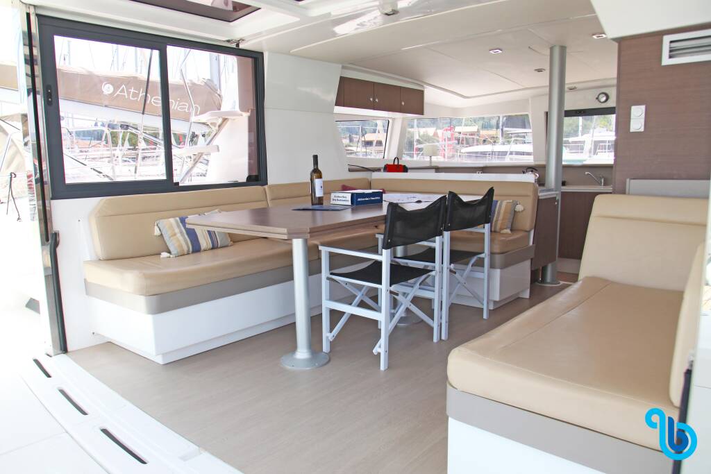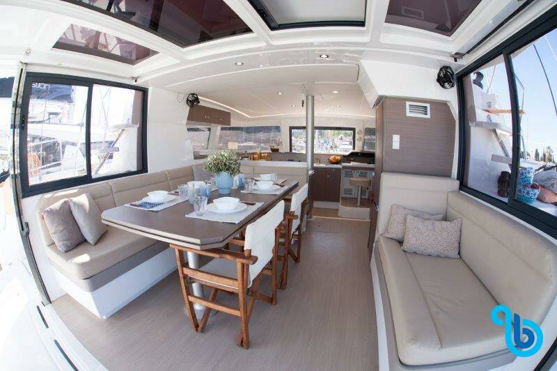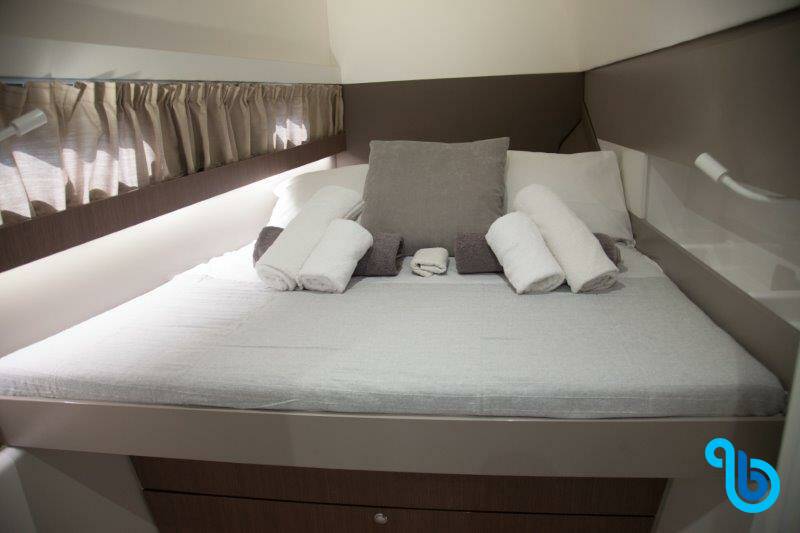 "Note negative: lentissima a motore, con manetta limitata per non superare i 2000rpm. strumenti non precisi, casse non funzionanti, cuscini esterni pochi, scomodi e svolazzanti. Note positve: performance a vela buona, spazi interni adeguatamente refrigerati con ventilatori sempre funzionanti, gruetta motore tender molto comoda"