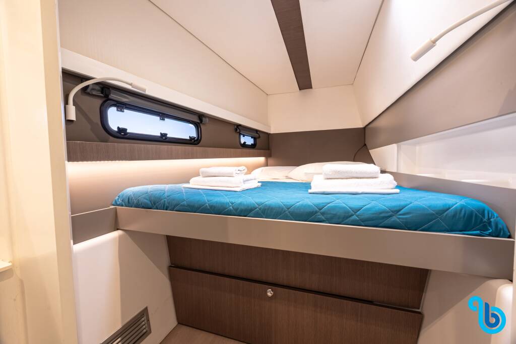 El patrón no está incluido en el precio del barco. Será posible añadir el patrón durante el procedimiento de confirmación: el coste suele oscilar entre 180 y 250 euros por día; el patrón necesita un camarote exclusivo. Tras consultar con un operador de BeBlue, será posible solicitar que el patrón duerma en la dinette (salón central).