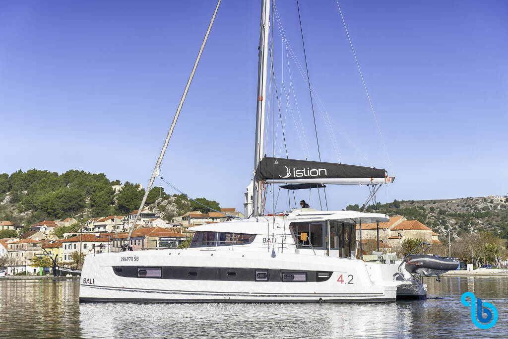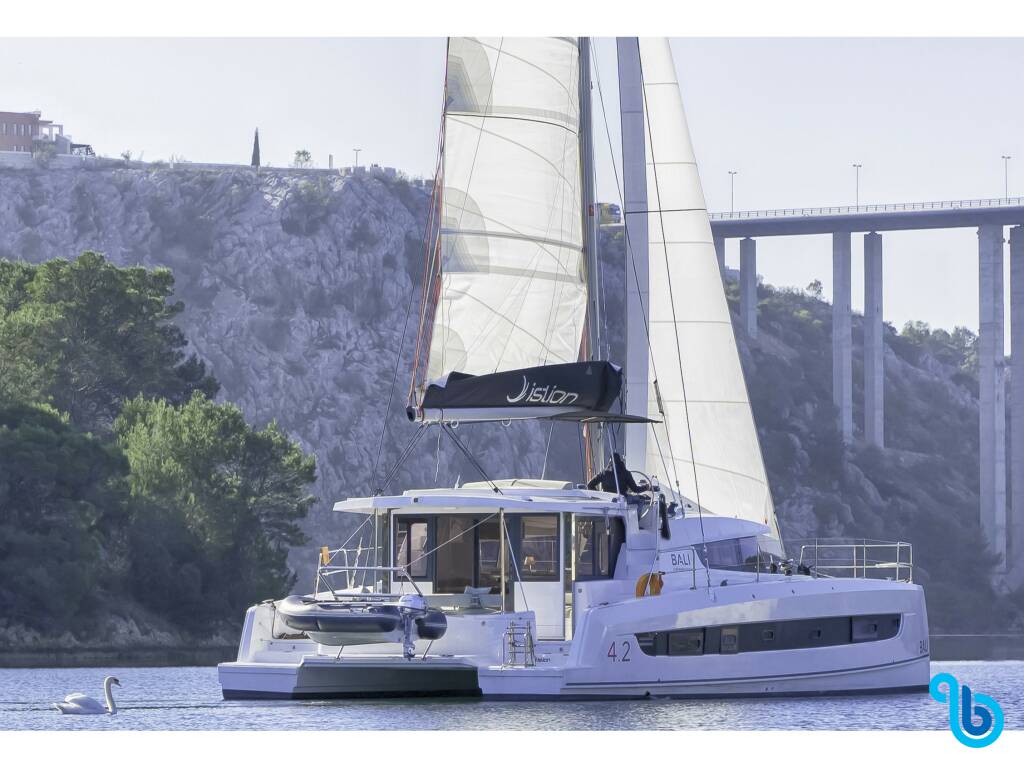 El Bali 4.2 FIRST SPARK (Catamarán), fue botado en el 2023 y tiene base en Región de Šibenik de la ciudad de ACI Marina Skradin. El casco está configurado con 4 + 1 cabinas y 5 wc y está homologado para alojar cómodamente 8 + 2 + 1 personas.