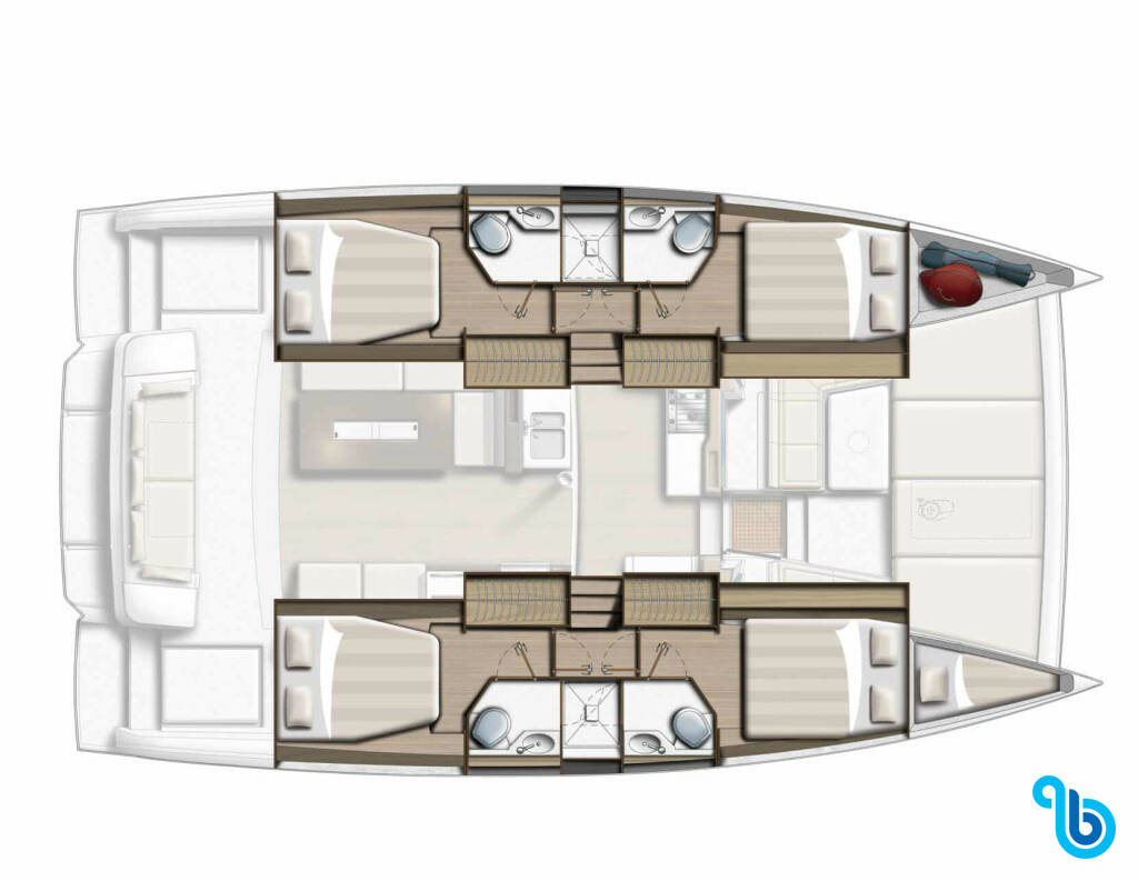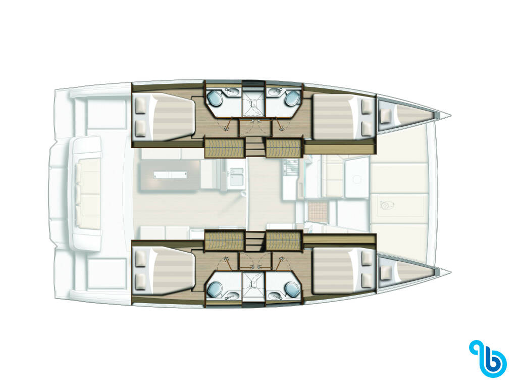 El patrón no está incluido en el precio del barco. Será posible añadir el patrón durante el procedimiento de confirmación: el coste suele oscilar entre 180 y 250 euros por día; el patrón necesita un camarote exclusivo. Tras consultar con un operador de BeBlue, será posible solicitar que el patrón duerma en la dinette (salón central).