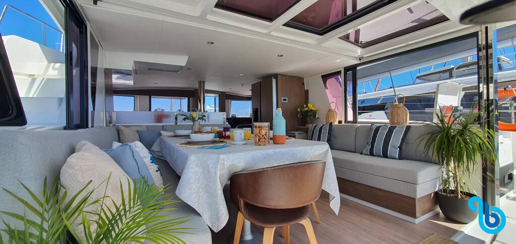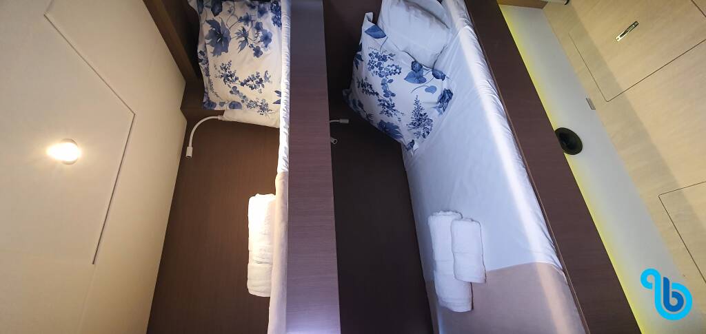 El patrón no está incluido en el precio del barco. Será posible añadir el patrón durante el procedimiento de confirmación: el coste suele oscilar entre 180 y 250 euros por día; el patrón necesita un camarote exclusivo. Tras consultar con un operador de BeBlue, será posible solicitar que el patrón duerma en la dinette (salón central).